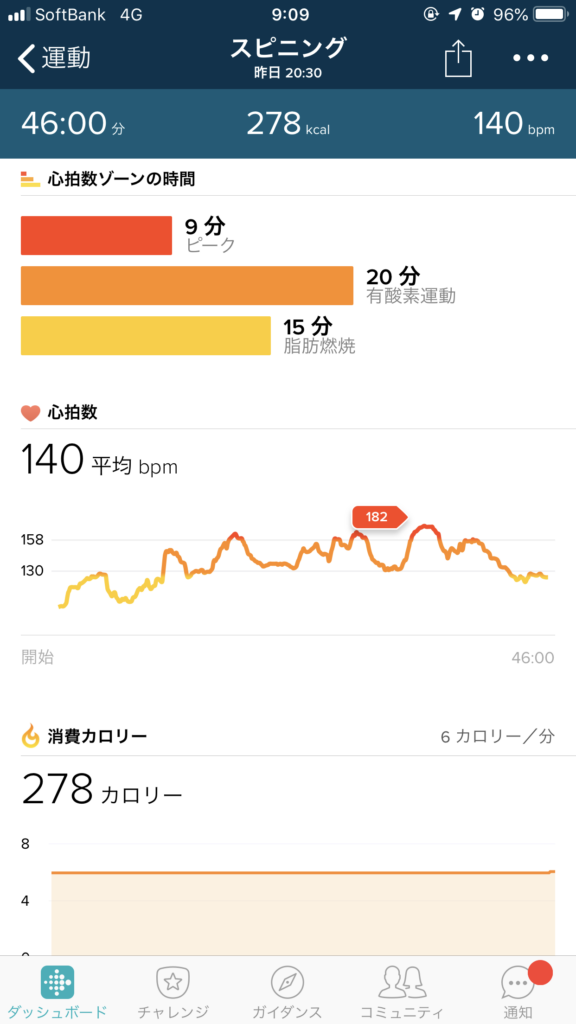 今週に入ってめちゃくちゃ暑いせいか入口の扉も閉められるようになったんですけど(SDMみたい~)、ほんと私昨日まじで外から来て暑い><って気持ちのままやってて、↓この心拍数絶対暑さのせいだったと思う!空調ガッツリだったし!