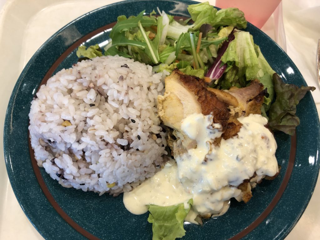 社員食堂でランチしました。これ500円くらいで食べられるなんて本社の人はほんとうらやましいな~。
